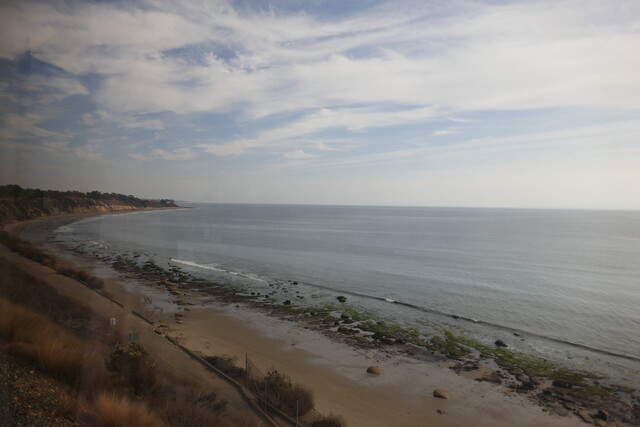 食後あたりから列車はちょうど海岸線に出ます。